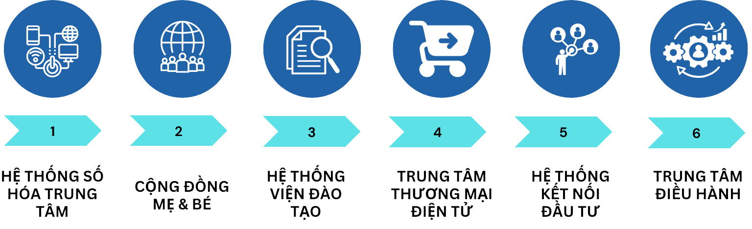 Hệ sinh thái với mục tiêu Nâng tầm sức khỏe cộng đồng người Việt, cá nhân hóa quá trình chăm sóc cho mỗi Mẹ & Bé, phát triển đội ngũ điều dưỡng, kỹ thuật viên chuyên nghiệp, chuẩn hóa chuyên nghiệp hóa trung tâm chăm sóc, mang thực phẩm dinh dưỡng chất lượng cao đến tay người tiêu dùng.